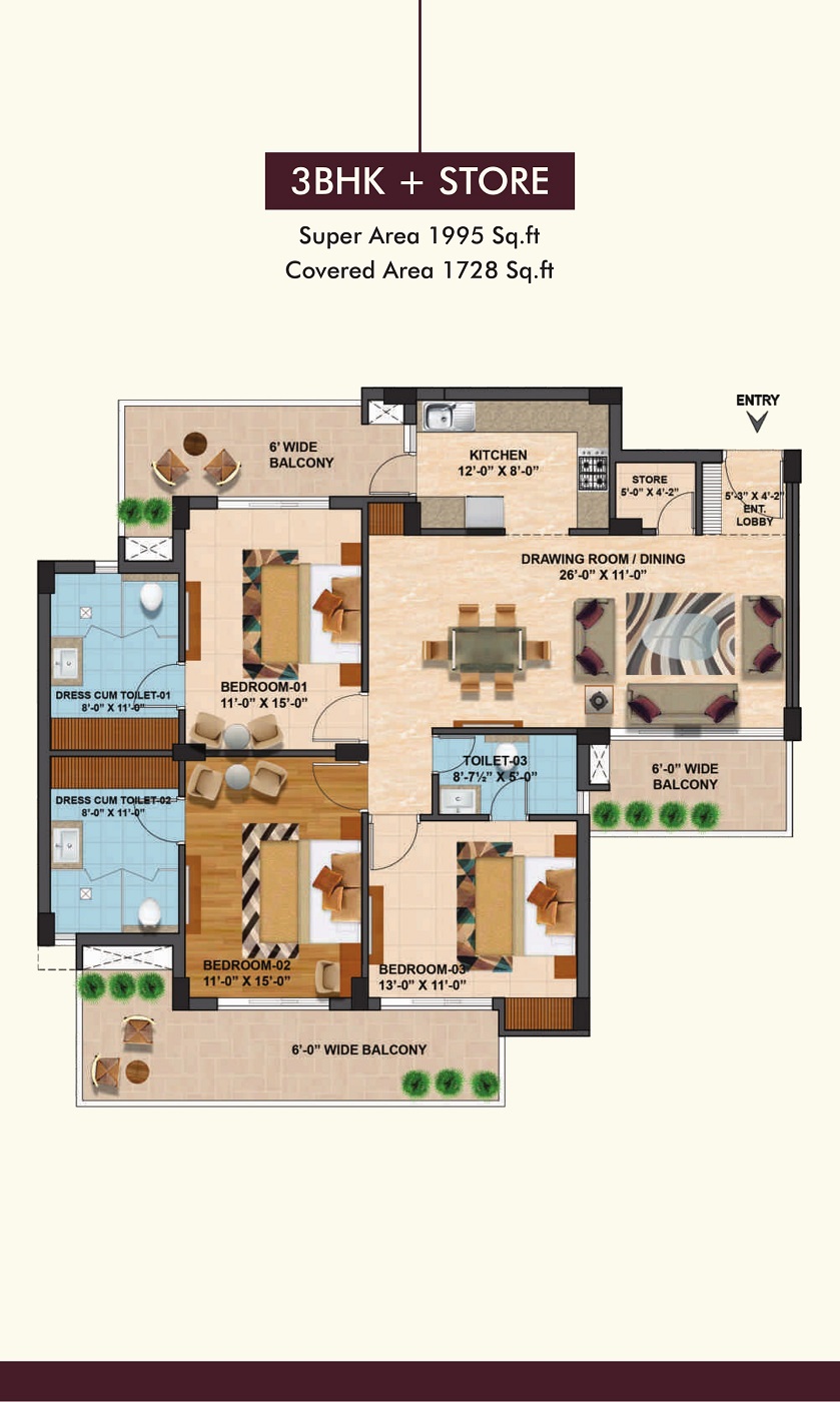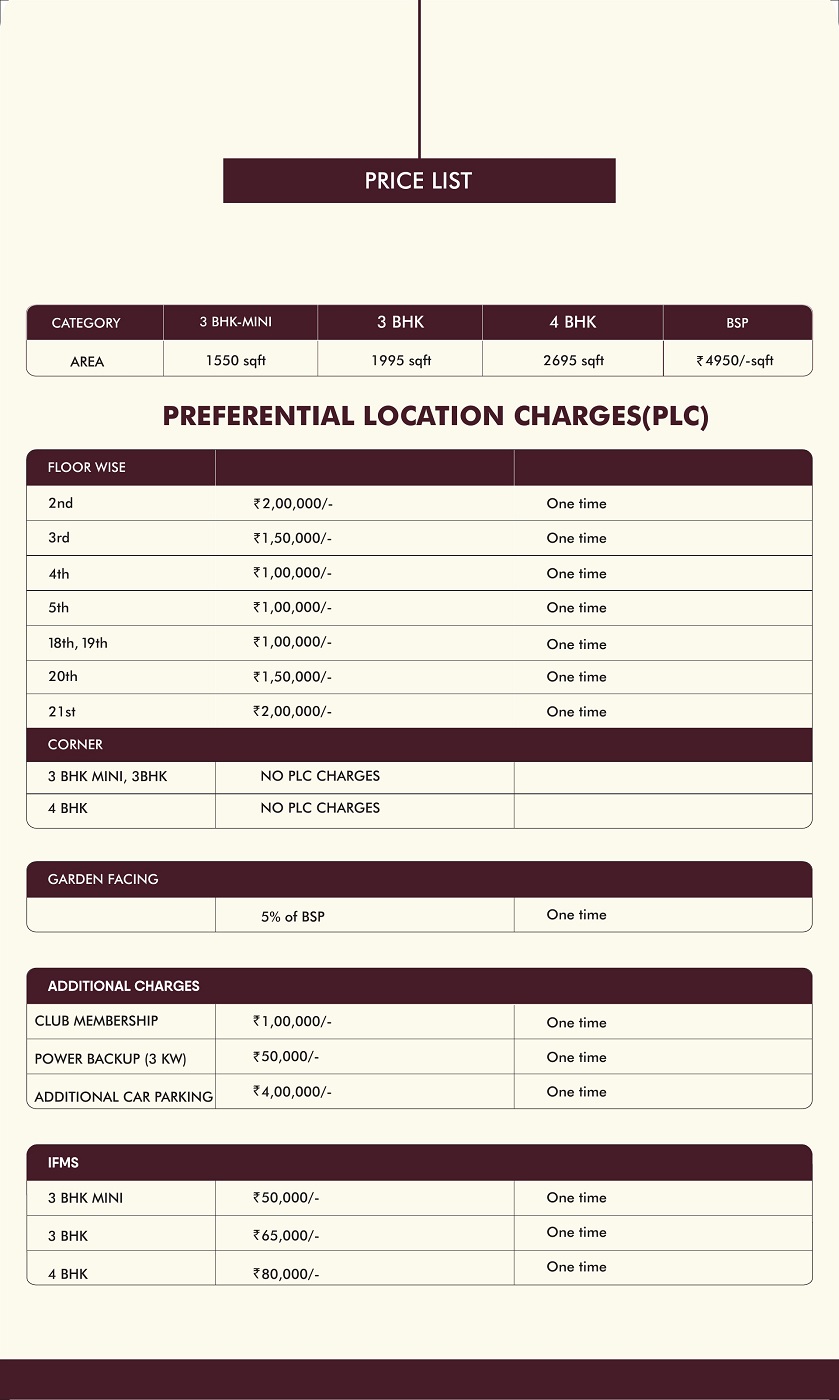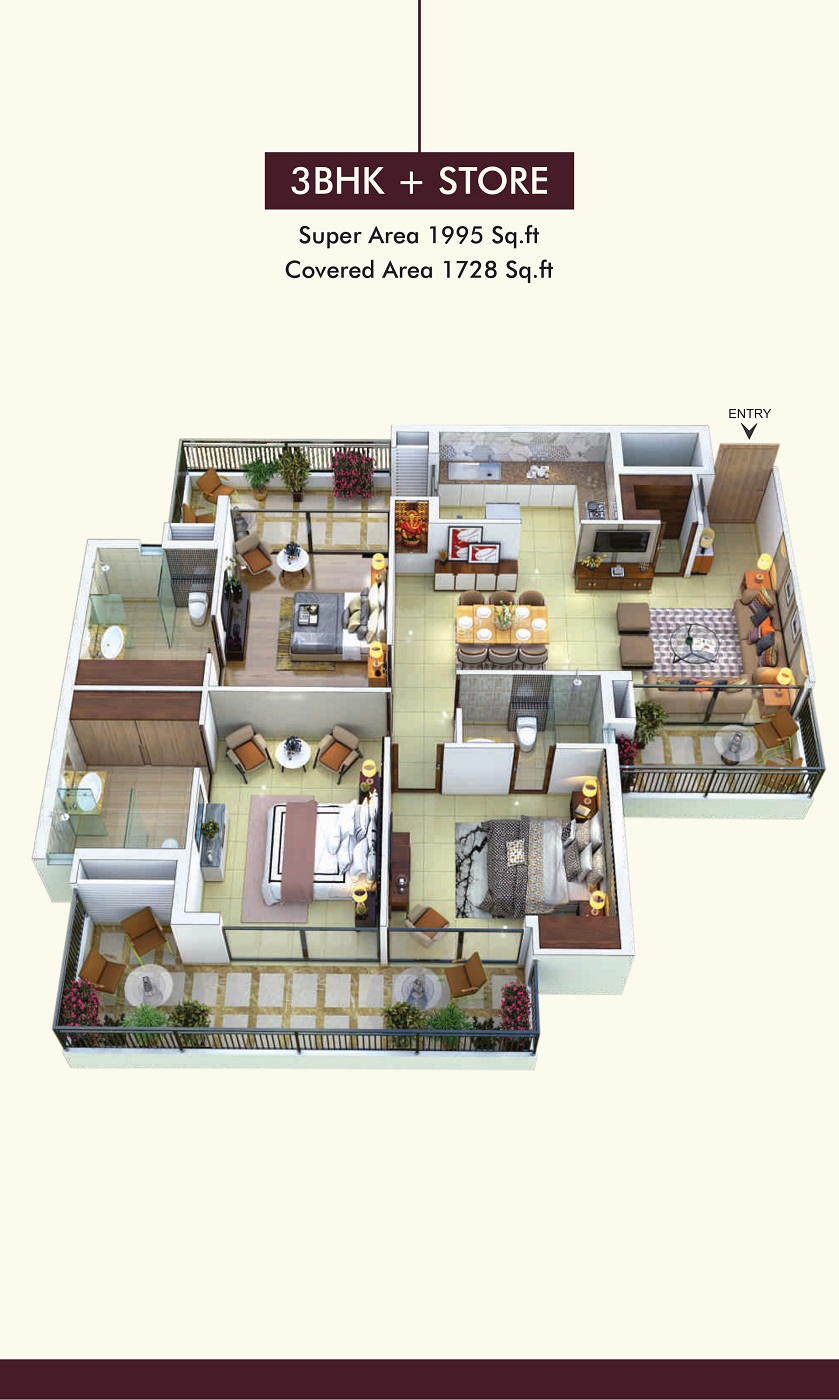 | Emerald 3BHK+Store | 1995 Sq.Ft. (Area) | ₹ 10000/- Per Sq.ft | |