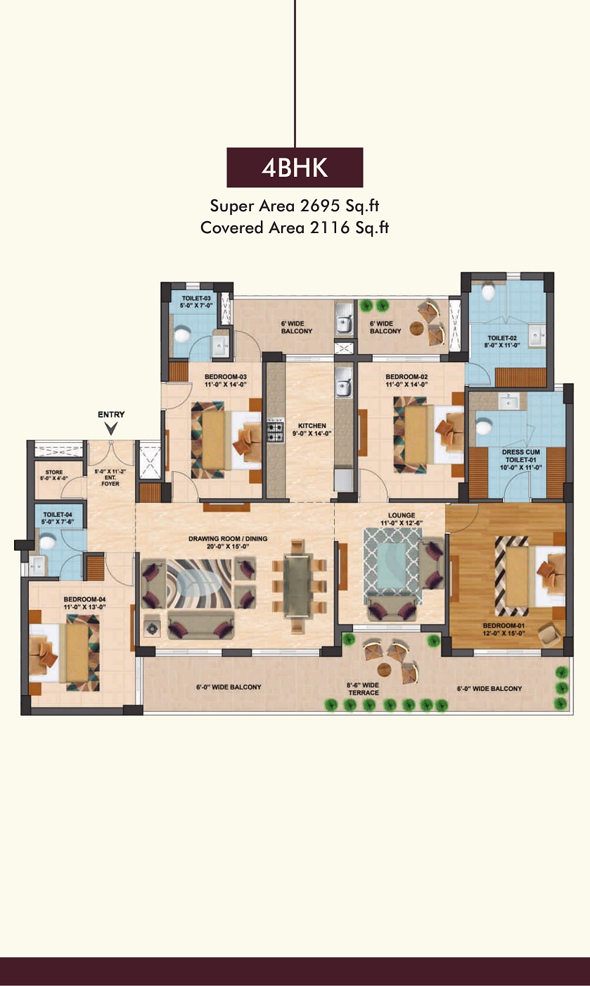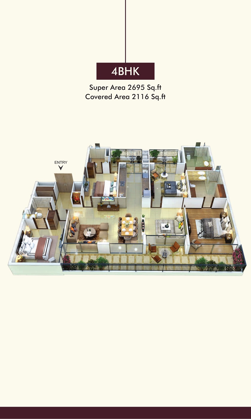 | Sapphire 4 BHK | 2695 Sq.Ft. (Area) | ₹ 10000/- Per Sq.ft |